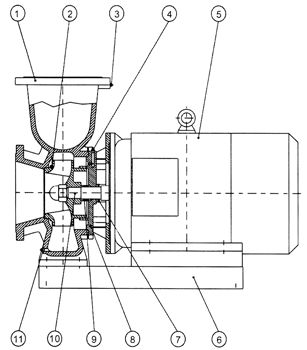 型號(hào)意義 ![]() 特點(diǎn) 1、泵為臥式結(jié)構(gòu),進(jìn)出口口徑相同,外形緊湊美觀,占地面積小,建筑投入低,如加上防護(hù)罩則可置于戶外使用。 2、葉輪直接安裝在電機(jī)的加長(zhǎng)軸上,軸向尺寸短,結(jié)構(gòu)緊湊,泵與電機(jī)軸承配置合理,能有效地平衡泵運(yùn)轉(zhuǎn)產(chǎn)生的徑向和軸向負(fù)荷,從而保證了泵的運(yùn)行平穩(wěn),振動(dòng)小、噪音低。 3、軸封采用機(jī)械密封或機(jī)械密封組合,采用進(jìn)口鈦合金密封環(huán)、中型耐高溫機(jī)械密封和采用硬質(zhì)合金材質(zhì),耐磨密封,能有效地延長(zhǎng)機(jī)械密封的使用壽命。 4、安裝檢修方便,無(wú)需拆動(dòng)管路系統(tǒng),只要卸下泵聯(lián)體座螺母即可抽出全部轉(zhuǎn)子部件。 5、可根據(jù)使用要求即流量和揚(yáng)程的需要采用泵的串、并聯(lián)運(yùn)行方式。 6、泵的出口可安裝成0°、90°、180°幾個(gè)不同方向以滿足不同的連接場(chǎng)合。 工作條件 1、泵系統(tǒng)最高工作壓力≤1.0Mpa,訂貨時(shí)請(qǐng)注明系統(tǒng)工作壓力。泵系統(tǒng)工作壓力大于1.0Mpa時(shí)應(yīng)在訂貨時(shí)另行提出,以便在制造時(shí)泵的過(guò)流部分和聯(lián)接部分采用更合理的材質(zhì)。 2、環(huán)境溫度<40℃,相對(duì)濕度<95%。 3、所輸送介質(zhì)中固體顆粒體積含量不超過(guò)單位體積的0.1%,粒度<0.2mm。 4、使用環(huán)境海拔高度不超過(guò)1000米,超過(guò)時(shí)應(yīng)在訂貨時(shí)提出,以便為您提供更可靠的產(chǎn)品 注:如使用介質(zhì)為帶有細(xì)小顆粒,請(qǐng)?jiān)谟嗀洉r(shí)說(shuō)明,以便廠家采用耐磨式機(jī)械密封。 用途 ISW臥式單級(jí)單吸離心泵,供輸送清水及物理化學(xué)性質(zhì)筆似于清水的其他液體之用,適用于工業(yè)和城市給排水、高層建筑增壓送水、園林噴灌、消防增壓、遠(yuǎn)距離輸送、暖通制冷特循環(huán)、浴室等冷暖水循環(huán)水泵環(huán)增壓及設(shè)備配套,使用溫度T<80℃。 結(jié)構(gòu)說(shuō)明 ![]() 1.泵體:降低液流速度,使速度能轉(zhuǎn)換成壓能。 2.葉輪:在泵中起主導(dǎo)作用,葉輪中的片強(qiáng)迫液體旋轉(zhuǎn),液體在離心力作用下向四周甩出。 3.取壓塞:安裝壓力表監(jiān)控泵的正常啟動(dòng)。 4.放氣閥:排放泵內(nèi)氣體,確保泵的正常啟動(dòng)。 5.Y/Y2系列電機(jī):泵的驅(qū)動(dòng)部分,采用直聯(lián)形式。 6.底盤(pán):泵的固定部分,確保泵安裝的穩(wěn)固, 7.擋水圈:防止因密封漏水而使用電機(jī)進(jìn)水。 8.泵蓋:精心設(shè)計(jì),與電機(jī)同端蓋,軸向尺寸縮短,結(jié)構(gòu)簡(jiǎn)單。 9.機(jī)械密封:采用不銹鋼、碳化鎢、氟橡膠等材料制成,密封性能好、壽命長(zhǎng)、不滲漏。 10.泵軸:與電機(jī)同軸,同心度高,使泵運(yùn)行平穩(wěn)無(wú)噪音和振動(dòng)現(xiàn)象。 11.放水塞:維護(hù)或長(zhǎng)期不用時(shí),將泵內(nèi)液體放干。 因產(chǎn)品生產(chǎn)批次、型號(hào)不同,產(chǎn)品圖片及安裝尺寸僅供參考,詳情可聯(lián)系我們的銷(xiāo)售人員了解更多ISW32-125臥式管道熱水泵相關(guān)信息!