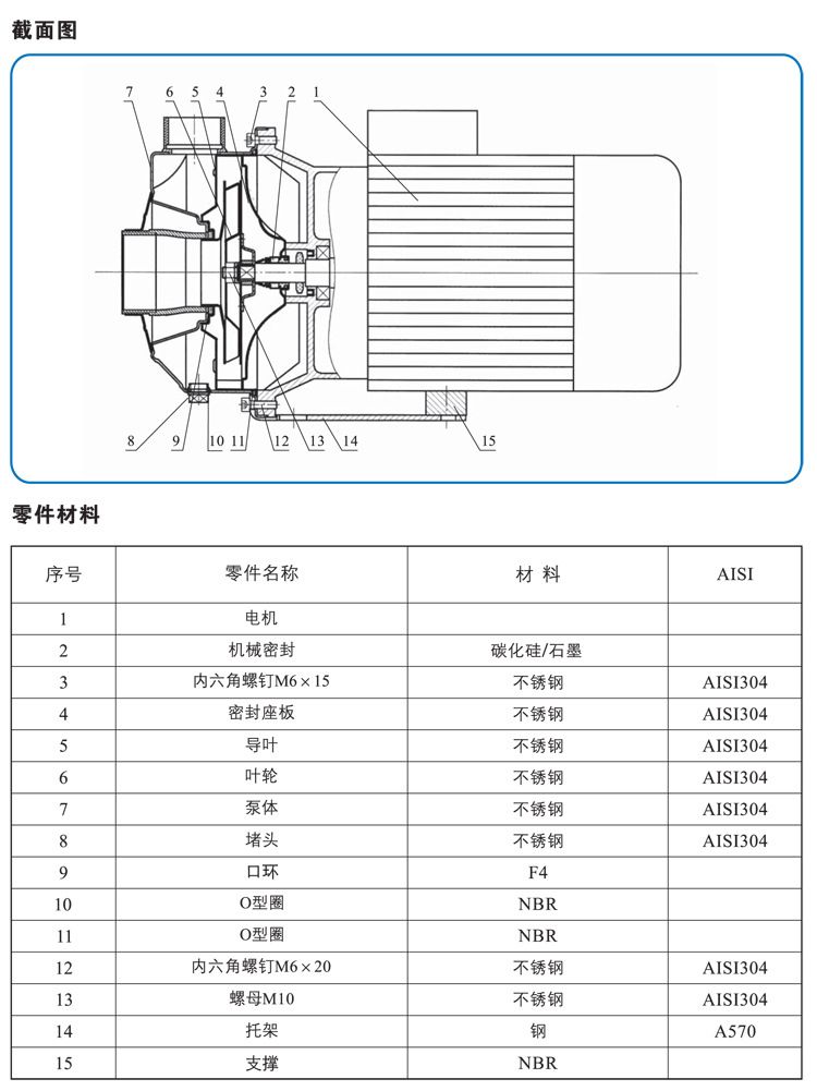 產(chǎn)品介紹 MS250/1.5SSC水處理增壓泵為單級葉輪離心泵,具有軸向吸水,徑向排水的特點,結(jié)構(gòu)緊湊,水泵與電機(jī)直接連接,同軸安裝,連接方便,配有螺紋進(jìn),出水口,重量輕,主要零部件均采用薄板沖壓件結(jié)構(gòu),耐輕腐蝕,過流部件采用AISI304或AISI316不銹鋼材料。 應(yīng)用范圍: .工,民用清水或其它液體的增壓,輸送 .水處理系統(tǒng) .水循環(huán)系統(tǒng) .農(nóng)業(yè)灌溉 .其它領(lǐng)域 MS250/1.5SSC水處理增壓泵工作條件: 稀薄、干凈、非易燃易爆并不固體顆粒和纖維的液體 可輸送輕腐蝕性介質(zhì)(與介質(zhì)中氯離子含量,酸和堿的濃度,是否對橡膠和機(jī)械密封摩擦付材料生產(chǎn)腐蝕等情況有關(guān)) 所輸送介質(zhì)的密度不能大于清水,粘度要接近于水。否則需配用大功率電機(jī) 液體溫度;-10°C至+85°C 環(huán)境溫度;最高+40°C 海拔;最高1000M 最大工作壓力;8巴. ![]() ![]() ![]() 因產(chǎn)品生產(chǎn)批次、型號不同,產(chǎn)品圖片及安裝尺寸僅供參考,詳情可聯(lián)系我們的銷售人員了解更多MS250/1.5SSC水處理增壓泵相關(guān)信息!