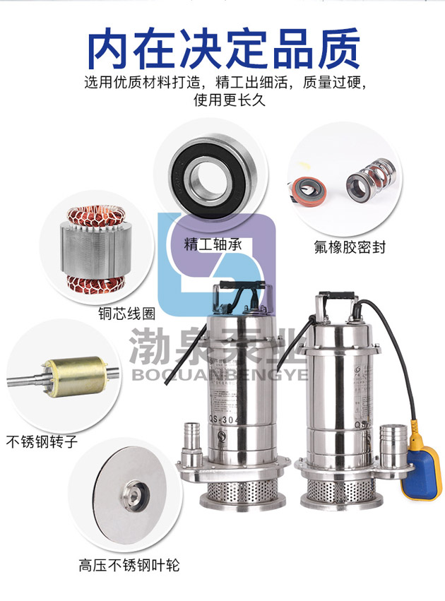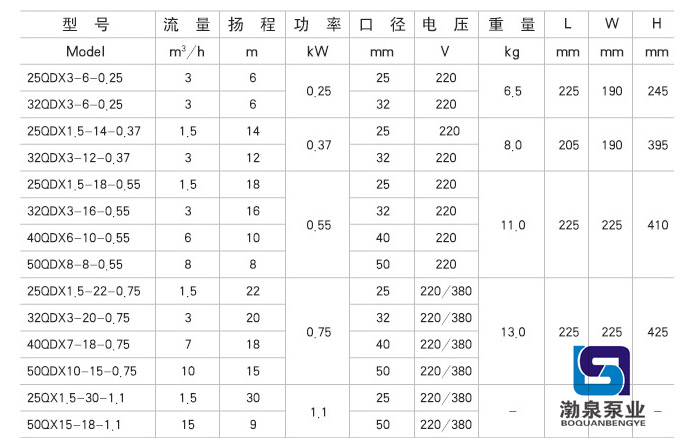 產(chǎn)品介紹 40QDX7-18-0.75 耐腐蝕高揚程不銹鋼潛水泵由水泵、密封、電動機三部分組成。電動機位于電泵上部,為單相或三相異步電動機,水泵位于電動機下部,為離心式葉輪,渦殼結(jié)構(gòu),水泵與電機之間采用雙端面機械密封。 用途: 40QDX7-18-0.75 耐腐蝕高揚程不銹鋼潛水泵系列不銹鋼潛水泵,主要用于農(nóng)田灌溉、養(yǎng)殖供水、園林澆噴、旅館、食堂、高層建筑供水等。 優(yōu)點: 體積小、重量輕、移動方便、安裝簡便、揚程高。 使用條件: 潛水泵在下列使用條件下應能連續(xù)正常工作: 1、介質(zhì)溫度不超過+40℃; 2、介質(zhì)的PH值在6.5-8.5之間; 3、介質(zhì)中含固體雜質(zhì)的體積比不超過0.1%,粒度不大于0.2mm 4、電源頻率為50Hz,電壓單相220V、三相380V,電壓波動范圍為額定值的0.9-1.1倍; 5、潛水深度不超過5m。 使用注意事項 1、使用前請仔細檢查電纜線,檢查是否在運輸過程中是否造成電纜線的破損。檢查完好后接入控制箱使用。 2、控制箱必須帶有過流、過壓(三相380V±5%、單相220V±5%的電源范圍內(nèi))、缺相、反轉(zhuǎn)、防漏電功能等保護裝置。 3、必須斷開電源后對水泵進行檢查維修。 4、在未斷開電源的情況下身體任何部位(特別是手指)不得靠近水泵進水口位置。避免以外發(fā)生。 ![]() ![]() ![]() 因產(chǎn)品生產(chǎn)批次、型號不同,產(chǎn)品圖片及安裝尺寸僅供參考,詳情可聯(lián)系我們的銷售人員了解更多40QDX7-18-0.75 耐腐蝕高揚程不銹鋼潛水泵相關(guān)信息!