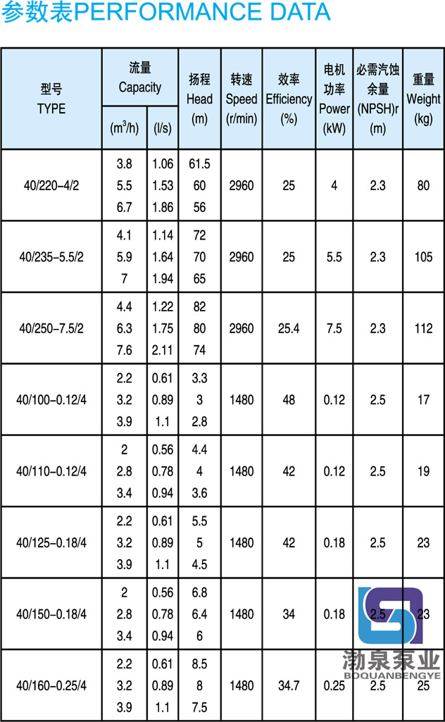產(chǎn)品介紹 KQL40/235-5.5/2 立式管道循環(huán)泵供輸送不含固體顆粒的清水及物理化學性質(zhì)類似于水的液體之用。同時根據(jù)使用溫度、介質(zhì)等不同在ISG型管道離心泵基礎(chǔ)上派出適用熱水、高溫、腐蝕性化工泵、油泵。該產(chǎn)品具有同效節(jié)能、噪音低、性能穩(wěn)定等特點。 用途: KQL40/235-5.5/2 立式管道循環(huán)泵用于空調(diào)、采暖、衛(wèi)生用水、水處理冷卻冷凍系統(tǒng)、液體循環(huán)和供水、增壓及灌溉等領(lǐng)域中無腐蝕的冷水和熱水輸送。 工作條件: 轉(zhuǎn)速:2960r/min,1480r/min或980r/min 流量范圍:1.8~2000m3/h 揚程:≤127m 介質(zhì)溫度:-10℃~120℃ 環(huán)境溫度:最大+40℃;海拔高度小于1000m;相對濕度不超過95% 材質(zhì): 泵殼、泵蓋、葉輪:鑄鐵 泵軸:45#鋼鍍鉻或不銹鋼(2Cr13) 機械密封動、靜環(huán):浸銻石墨、碳化硅 結(jié)構(gòu):結(jié)構(gòu)緊湊的單級泵,適用于現(xiàn)代建筑物。 產(chǎn)品特點: KQL40/235-5.5/2 立式管道循環(huán)泵結(jié)構(gòu)緊湊、合理,泵與電機直接連接,外形美觀,占地面積小效率高,閉式鑄鐵葉輪,葉輪懸臂短,機泵軸完全同心,泵運行平穩(wěn)、可靠,噪音低壽命長,強制環(huán)流沖洗機械密封,免保養(yǎng)、無滲漏。 管道泵選型指南: 例如:KQL80/160-7.5/2 或KQW80/160-7.5 KQL標準立式單級離心泵,KQW標準臥式單級離心泵 80進出口直徑 160葉輪名義直徑 7.5/2電機功率/電機極數(shù) ![]() ![]() 因產(chǎn)品生產(chǎn)批次、型號不同,產(chǎn)品圖片及安裝尺寸僅供參考,詳情可聯(lián)系我們的銷售人員了解更多KQL40/235-5.5/2 立式管道循環(huán)泵相關(guān)信息!