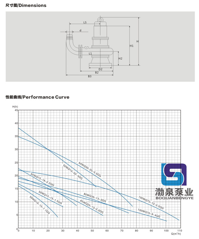 產(chǎn)品介紹 100WQ100-25-11QG 無堵塞切割污水泵具有排污通過能力特別強(qiáng),帶切割性能好,能將污水中的長(zhǎng)纖維、塑料、紙、帶、布條、稻草、繩子等雜質(zhì)切碎后排出,電泵可以全揚(yáng)程運(yùn)行,優(yōu)良的干式電機(jī)和水泵的組合,使電泵的總效率達(dá)到西德abs公司的ass帶切割裝置系列產(chǎn)品相同,排污泵采用高質(zhì)量的硬質(zhì)合金,雙端面機(jī)械密封和骨架油封組面部位,不得超過電動(dòng)機(jī)高度的1/2,抽送污物溫度不超過40℃。 100WQ100-25-11QG 無堵塞切割污水泵泵主要用于排送生活廢水、污水、人糞尿及含有短纖維紙屑、木屑、淀粉、泥沙、礦石粒等固體懸浮物和非腐蝕性介質(zhì),被抽送液體溫度不超過40℃,密度不大于1200kg/m3,ph值~9。該電泵采用雙端面機(jī)械密封和旋轉(zhuǎn)葉輪,葉輪采用不銹鋼、耐磨損、不堵塞、不纏繞、具有體積小、結(jié)構(gòu)緊湊、攜方便等優(yōu)點(diǎn)。 適用范圍 100WQ100-25-11QG 無堵塞切割污水泵主要用于工程污水,生活污水。 如: (1)用于建筑工地、工程基礎(chǔ)施工、市政設(shè)施、自來水廠。 (2)各種高樓大廈的地下室、人防坑洞、地鐵等地下層污水排放。 (3)中小型企業(yè)污水處理及循環(huán)水輸送。 (4)食品、造紙、釀造、鋼鐵及有色金屬、制革、紡織、制藥、水泥廠等廠礦企業(yè)的渣漿液抽送。 (5)養(yǎng)雞場(chǎng),養(yǎng)豬場(chǎng),各種養(yǎng)殖業(yè),魚池作抽水清塘、增氧,化糞池等各種場(chǎng)合的人畜糞尿抽送等作用。 注:WQ/QG主要性能及數(shù)據(jù)除不帶切割裝置外,其內(nèi)部結(jié)構(gòu)均同WQ/QG型。 ![]() ![]() 因產(chǎn)品生產(chǎn)批次、型號(hào)不同,產(chǎn)品圖片及安裝尺寸僅供參考,詳情可聯(lián)系我們的銷售人員了解更多100WQ100-25-11QG 無堵塞切割污水泵相關(guān)信息!