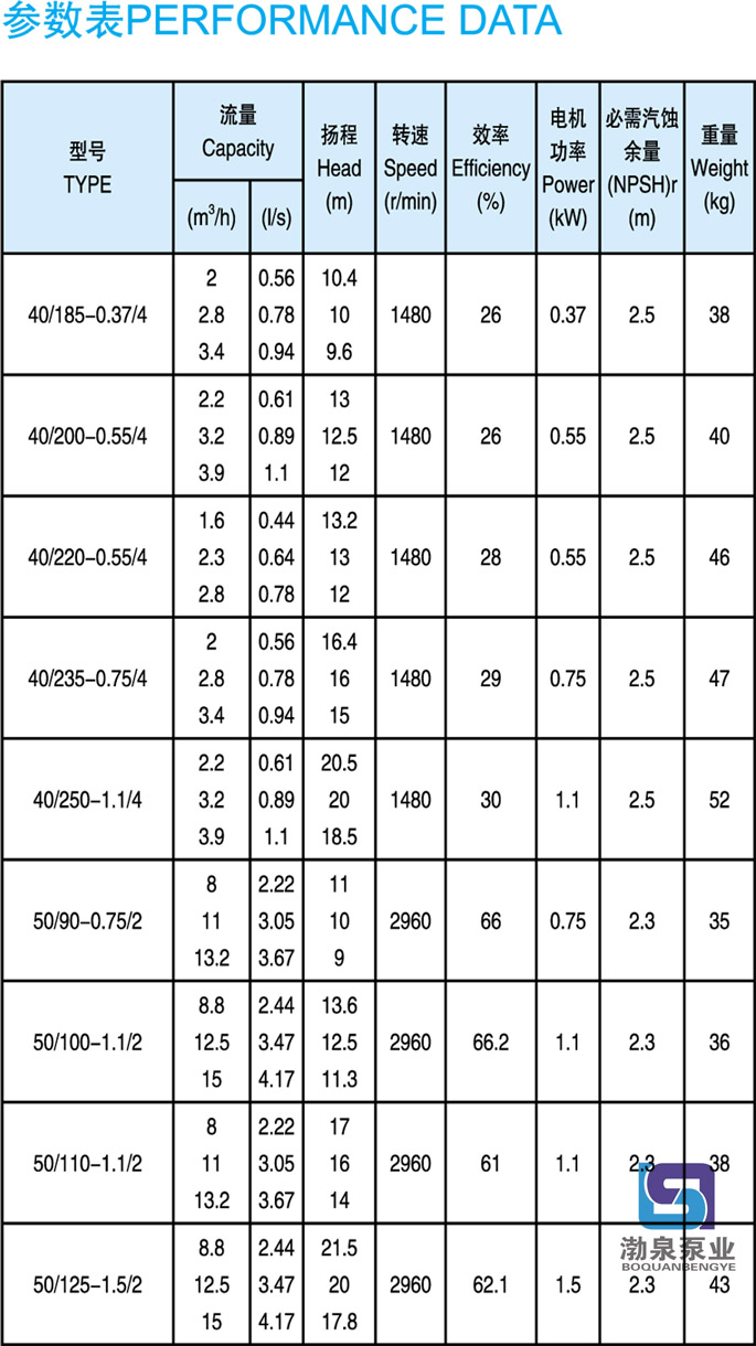 產(chǎn)品介紹 KQL50/100-1.1/2 立式管道循環(huán)泵供輸送不含固體顆粒的清水及物理化學(xué)性質(zhì)類似于水的液體之用。同時(shí)根據(jù)使用溫度、介質(zhì)等不同在ISG型管道離心泵基礎(chǔ)上派出適用熱水、高溫、腐蝕性化工泵、油泵。該產(chǎn)品具有同效節(jié)能、噪音低、性能穩(wěn)定等特點(diǎn)。 用途: KQL50/100-1.1/2 立式管道循環(huán)泵用于空調(diào)、采暖、衛(wèi)生用水、水處理冷卻冷凍系統(tǒng)、液體循環(huán)和供水、增壓及灌溉等領(lǐng)域中無(wú)腐蝕的冷水和熱水輸送。 工作條件: 轉(zhuǎn)速:2960r/min,1480r/min或980r/min 流量范圍:1.8~2000m3/h 揚(yáng)程:≤127m 介質(zhì)溫度:-10℃~120℃ 環(huán)境溫度:最大+40℃;海拔高度小于1000m;相對(duì)濕度不超過(guò)95% 材質(zhì): 泵殼、泵蓋、葉輪:鑄鐵 泵軸:45#鋼鍍鉻或不銹鋼(2Cr13) 機(jī)械密封動(dòng)、靜環(huán):浸銻石墨、碳化硅 結(jié)構(gòu):結(jié)構(gòu)緊湊的單級(jí)泵,適用于現(xiàn)代建筑物的。 產(chǎn)品特點(diǎn): KQL50/100-1.1/2 立式管道循環(huán)泵結(jié)構(gòu)緊湊、合理,泵與電機(jī)直接連接,外形美觀,占地面積小效率高,閉式鑄鐵葉輪,葉輪懸臂短,機(jī)泵軸完全同心,泵運(yùn)行平穩(wěn)、可靠,噪音低壽命長(zhǎng),強(qiáng)制環(huán)流沖洗機(jī)械密封,免保養(yǎng)、無(wú)滲漏。 管道泵選型指南: 例如:KQL80/160-7.5/2 或KQW80/160-7.5 KQL標(biāo)準(zhǔn)立式單級(jí)離心泵,KQW標(biāo)準(zhǔn)臥式單級(jí)離心泵 80進(jìn)出口直徑 160葉輪名義直徑 7.5/2電機(jī)功率/電機(jī)極數(shù) ![]() ![]() 因產(chǎn)品生產(chǎn)批次、型號(hào)不同,產(chǎn)品圖片及安裝尺寸僅供參考,詳情可聯(lián)系我們的銷售人員了解更多KQL50/100-1.1/2 立式管道循環(huán)泵相關(guān)信息!