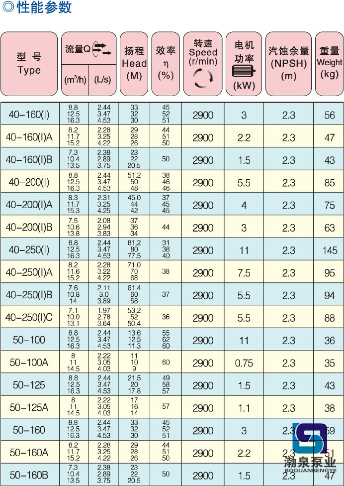 產(chǎn)品介紹 ISWR40-160(I)A 臥式管道熱水泵是采用IS型離心泵之性能參數(shù),在一般臥式泵的基礎(chǔ)上進(jìn)行巧妙組合設(shè)計(jì)而成,同時(shí)根據(jù)使用溫度、介質(zhì)等不同在ISW型管道泵基礎(chǔ)上派生出適用熱水泵、高溫、耐腐蝕化工泵、油泵。該系列產(chǎn)品具有高效節(jié)能、噪音低、性能可靠等優(yōu)點(diǎn),符合JB/T53058-93的標(biāo)準(zhǔn)要求,產(chǎn)品按ISO2858標(biāo)準(zhǔn)設(shè)計(jì)制造。具有效率高、流量及揚(yáng)程范圍大、結(jié)構(gòu)合理、成本低、壽命長、占地面積小、安裝維修方便等特點(diǎn)。是替代IS、DL等常規(guī)產(chǎn)品的新離心泵,特別適用于高層建筑的給排水、噴灌、冶金、市政、礦山水處理排污,食品、化工、空調(diào)及其他行業(yè)輸送水、化學(xué)介質(zhì)及其他液體。 ISWR40-160(I)A 臥式管道熱水泵流量范圍15~1200m3 /h,分基本型、擴(kuò)流型、A、B、C切割型等250多種規(guī)格,并根據(jù)流體介質(zhì)和溫度不同又派生出清水泵、熱水泵、化工泵、防爆油泵、防爆化工泵等系列產(chǎn)品。 主要用途 1、ISW臥式清水泵供輸送清水及物理化學(xué)性質(zhì)類似于清水的其它液體之用,適用于工業(yè)和城市給排水、高層建筑增壓送水、園林噴灌、消防增壓、遠(yuǎn)距離輸送、暖通制冷循環(huán)、浴室等冷暖水循環(huán)增壓及設(shè)備配套,使用溫度T≤80℃。 2、ISWR臥式熱水泵,廣泛適用于:冶金、化工、紡織、造紙以及賓館飯店等鍋爐熱水增壓循環(huán)輸送及城市采暖系統(tǒng),ISWR型使用溫度T≤120℃。 3、ISWH臥式化工泵,供輸送不含固體顆粒,具有腐蝕性。粘度類似于水的液體,適用于石油、化工、冶金、電力、造紙、食品、制藥和合成纖維等部門,使用溫度為-20℃~+120℃。 4、ISWY臥式管道油泵,供輸送汽油、煤油、柴油等油類產(chǎn)品或易燃、易爆液體,被輸送介質(zhì)溫度為-20℃~120℃。 5、ISWHY型臥式不銹鋼防爆化工離心泵,適用于輸送易燃性化工液體。 6、ISWD臥式低轉(zhuǎn)速泵,適應(yīng)要求環(huán)境噪聲很低的場合,使用溫度T≤120℃。 ISWR40-160(I)A 臥式管道熱水泵工作條件 1.吸入壓力≤1.0MPa,或泵系統(tǒng)最高工作壓力≤1.6MPa,即吸入口壓力+泵揚(yáng)程≤1.6MPa、泵靜壓試驗(yàn)壓力為≤2.5MPa,訂貨時(shí)請注明系統(tǒng)工作壓力。泵系統(tǒng)工作壓力大于1.6MPa時(shí)應(yīng)在訂貨時(shí)另行提出,以便在制造時(shí)泵的過流部分和聯(lián)接部分采用鑄鋼材料。 2.環(huán)境溫度<40℃,相對濕度<40%。 3.所輸送介質(zhì)中固體顆粒體積含量不超過單位體積的0.1,粒度<0.2mm。 注:如果用介質(zhì)為帶有細(xì)小顆粒,請?jiān)谟嗀洉r(shí)說明,以便廠家采用耐磨式機(jī)械密封。 產(chǎn)品特點(diǎn) 運(yùn)行平穩(wěn):泵軸的絕對同心度及葉輪優(yōu)異的動靜平衡,保證平穩(wěn)運(yùn)行,絕無振動。 滴水不漏:不同材質(zhì)的硬質(zhì)合金密封,保證了不同介質(zhì)輸送均無泄漏。 噪音低:兩個低噪音軸承支撐下的水泵,運(yùn)轉(zhuǎn)平穩(wěn),除電機(jī)微弱聲響,基本無噪音。 故障率低:結(jié)構(gòu)簡單合理,關(guān)鍵部分采用品質(zhì)配套,整機(jī)無故障工作時(shí)間大大提高。 維修方便:更換密封、軸承,簡易方便。 占地更?。撼隹诳上蜃?、向右、向上三個方向,便于管道布置安裝,節(jié)省空間。 ![]() ![]() ![]() 因產(chǎn)品生產(chǎn)批次、型號不同,產(chǎn)品圖片及安裝尺寸僅供參考,詳情可聯(lián)系我們的銷售人員了解更多ISWR40-160(I)A 臥式管道熱水泵相關(guān)信息!