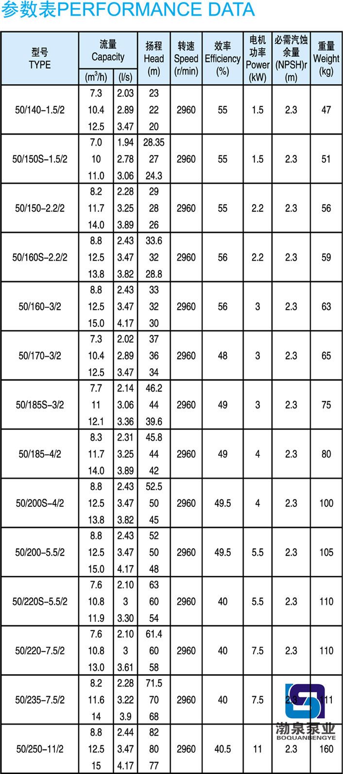 產(chǎn)品介紹 KQL50/140-1.5/2 立式單級離心泵供輸送不含固體顆粒的清水及物理化學(xué)性質(zhì)類似于水的液體之用。同時根據(jù)使用溫度、介質(zhì)等不同在ISG型管道離心泵基礎(chǔ)上派出適用熱水、高溫、腐蝕性化工泵、油泵。該產(chǎn)品具有同效節(jié)能、噪音低、性能穩(wěn)定等特點。 用途: KQL50/140-1.5/2 立式單級離心泵用于空調(diào)、采暖、衛(wèi)生用水、水處理冷卻冷凍系統(tǒng)、液體循環(huán)和供水、增壓及灌溉等領(lǐng)域中無腐蝕的冷水和熱水輸送。 工作條件: 轉(zhuǎn)速:2960r/min,1480r/min或980r/min 流量范圍:1.8~2000m3/h 揚(yáng)程:≤127m 介質(zhì)溫度:-10℃~120℃ 環(huán)境溫度:最大+40℃;海拔高度小于1000m;相對濕度不超過95% 材質(zhì): 泵殼、泵蓋、葉輪:鑄鐵 泵軸:45#鋼鍍鉻或不銹鋼(2Cr13) 機(jī)械密封動、靜環(huán):浸銻石墨、碳化硅 結(jié)構(gòu):結(jié)構(gòu)緊湊的單級泵,適用于現(xiàn)代建筑物的。 產(chǎn)品特點: KQL50/140-1.5/2 立式單級離心泵結(jié)構(gòu)緊湊、合理,泵與電機(jī)直接連接,外形美觀,占地面積小效率高,閉式鑄鐵葉輪,葉輪懸臂短,機(jī)泵軸完全同心,泵運(yùn)行平穩(wěn)、可靠,噪音低壽命長,強(qiáng)制環(huán)流沖洗機(jī)械密封,免保養(yǎng)、無滲漏。 管道泵選型指南: 例如:KQL80/160-7.5/2 或KQW80/160-7.5 KQL標(biāo)準(zhǔn)立式單級離心泵,KQW標(biāo)準(zhǔn)臥式單級離心泵 80進(jìn)出口直徑 160葉輪名義直徑 7.5/2電機(jī)功率/電機(jī)極數(shù) ![]() ![]() 因產(chǎn)品生產(chǎn)批次、型號不同,產(chǎn)品圖片及安裝尺寸僅供參考,詳情可聯(lián)系我們的銷售人員了解更多KQL50/140-1.5/2 立式單級離心泵相關(guān)信息!