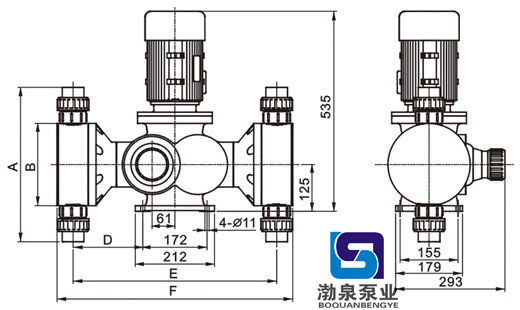 產(chǎn)品介紹 GB-S3600/0.3 隔膜式加藥計(jì)量泵產(chǎn)品介紹 流量范圍: 0-3600 L/H 壓力范圍: 0-0.5 MPA 電機(jī)功率: 1.5KW,380V / 420V, 50/60Hz 驅(qū)動(dòng)系統(tǒng): 兩相、三相標(biāo)準(zhǔn)電機(jī)或防爆電機(jī) 材料 泵頭: SUS304, SUS316, PVC, PTFE 隔膜: PTFE 單向閥: SUS304, SUS316, PVC, PTFE 閥球: ZrO2, SUS304, SUS316, 陶瓷 工作條件 環(huán)境溫度: -30℃ --- 80℃ 技術(shù)參數(shù)
