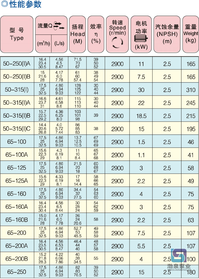 產(chǎn)品介紹 ISW65-100 臥式熱水循環(huán)管道泵是采用IS型離心泵之性能參數(shù),在一般臥式泵的基礎(chǔ)上進行巧妙組合設(shè)計而成,同時根據(jù)使用溫度、介質(zhì)等不同在ISW型管道泵基礎(chǔ)上派生出適用熱水泵、高溫、耐腐蝕化工泵、油泵。該系列產(chǎn)品具有高效節(jié)能、噪音低、性能可靠等優(yōu)點,符合JB/T53058-93的標準要求,產(chǎn)品按ISO2858標準設(shè)計制造。具有效率高、流量及揚程范圍大、結(jié)構(gòu)合理、成本低、壽命長、占地面積小、安裝維修方便等特點。是替代IS、DL等常規(guī)產(chǎn)品的新離心泵,特別適用于高層建筑的給排水、噴灌、冶金、市政、礦山水處理排污,食品、化工、空調(diào)及其他行業(yè)輸送水、化學(xué)介質(zhì)及其他液體。 ISW65-100 臥式熱水循環(huán)管道泵流量范圍15~1200m3 /h,分基本型、擴流型、A、B、C切割型等250多種規(guī)格,并根據(jù)流體介質(zhì)和溫度不同又派生出清水泵、熱水泵、化工泵、防爆油泵、防爆化工泵等系列產(chǎn)品。 ISW65-100 臥式熱水循環(huán)管道泵主要用途 1、ISW臥式清水泵供輸送清水及物理化學(xué)性質(zhì)類似于清水的其它液體之用,適用于工業(yè)和城市給排水、高層建筑增壓送水、園林噴灌、消防增壓、遠距離輸送、暖通制冷循環(huán)、浴室等冷暖水循環(huán)增壓及設(shè)備配套,使用溫度T≤80℃。 2、ISWR臥式熱水泵,廣泛適用于:冶金、化工、紡織、造紙以及賓館飯店等鍋爐熱水增壓循環(huán)輸送及城市采暖系統(tǒng),ISWR型使用溫度T≤120℃。 3、ISWH臥式化工泵,供輸送不含固體顆粒,具有腐蝕性。粘度類似于水的液體,適用于石油、化工、冶金、電力、造紙、食品、制藥和合成纖維等部門,使用溫度為-20℃~+120℃。 4、ISWY臥式管道油泵,供輸送汽油、煤油、柴油等油類產(chǎn)品或易燃、易爆液體,被輸送介質(zhì)溫度為-20℃~120℃。 5、ISWHY型臥式不銹鋼防爆化工離心泵,適用于輸送易燃性化工液體。 6、ISWD臥式低轉(zhuǎn)速泵,適應(yīng)要求環(huán)境噪聲很低的場合,使用溫度T≤120℃。 ISW65-100 臥式熱水循環(huán)管道泵工作條件 1.吸入壓力≤1.0MPa,或泵系統(tǒng)最高工作壓力≤1.6MPa,即吸入口壓力+泵揚程≤1.6MPa、泵靜壓試驗壓力為≤2.5MPa,訂貨時請注明系統(tǒng)工作壓力。泵系統(tǒng)工作壓力大于1.6MPa時應(yīng)在訂貨時另行提出,以便在制造時泵的過流部分和聯(lián)接部分采用鑄鋼材料。 2.環(huán)境溫度<40℃,相對濕度<40%。 3.所輸送介質(zhì)中固體顆粒體積含量不超過單位體積的0.1,粒度<0.2mm。 注:如果用介質(zhì)為帶有細小顆粒,請在訂貨時說明,以便廠家采用耐磨式機械密封。 ISW65-100 臥式熱水循環(huán)管道泵產(chǎn)品特點 運行平穩(wěn):泵軸的絕對同心度及葉輪優(yōu)異的動靜平衡,保證平穩(wěn)運行,絕無振動。 滴水不漏:不同材質(zhì)的硬質(zhì)合金密封,保證了不同介質(zhì)輸送均無泄漏。 噪音低:兩個低噪音軸承支撐下的水泵,運轉(zhuǎn)平穩(wěn),除電機微弱聲響,基本無噪音。 故障率低:結(jié)構(gòu)簡單合理,關(guān)鍵部分采用品質(zhì)配套,整機無故障工作時間大大提高。 維修方便:更換密封、軸承,簡易方便。 占地更?。撼隹诳上蜃?、向右、向上三個方向,便于管道布置安裝,節(jié)省空間。 ![]() ![]() ![]() 因產(chǎn)品生產(chǎn)批次、型號不同,產(chǎn)品圖片及安裝尺寸僅供參考,詳情可聯(lián)系我們的銷售人員了解更多ISW65-100 臥式熱水循環(huán)管道泵相關(guān)信息!