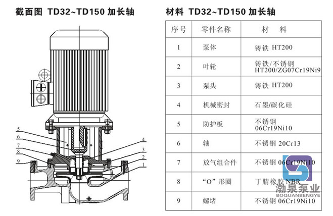 產(chǎn)品介紹 TD100-52/2SWHC 冷卻塔循環(huán)水泵配有標(biāo)準(zhǔn)電機(jī)和機(jī)械密封。此類管道泵產(chǎn)品的結(jié)構(gòu)與相近類型產(chǎn)品相比,更不易受到泵送液體中雜質(zhì)的影響。 產(chǎn)品設(shè)計(jì)為頂部可拉出的拆裝形式,其可以在不影響管路系統(tǒng)的情況下對(duì)泵進(jìn)行維護(hù)。 應(yīng)用 產(chǎn)品適宜在清潔、稀薄、非侵蝕、非易爆易燃,且不含有任何可能對(duì)泵造成機(jī)械或化學(xué)損害的固體顆粒和纖維的液體中使用。具體對(duì)液體要求及應(yīng)用如下;而在液體粘稠或密度較大情況下使用時(shí)會(huì)造成泵特性曲線的下降和能耗的增加。 液體溫度:-15℃~110℃ 系統(tǒng)最高壓力:常規(guī)型為PN12巴;特殊型為PN16巴。 TD100-52/2SWHC 冷卻塔循環(huán)水泵產(chǎn)品在用于輸送水時(shí),其可以用于生活用水、工業(yè)用水、冷卻系統(tǒng)用水和區(qū)域供熱系統(tǒng)的冷、熱用水。TD離心泵產(chǎn)品可以在以下位置使用: ·混合環(huán)路中的泵 ·鍋爐混流泵 ·燃?xì)饫鋬鰴C(jī)泵 ·部分流量過(guò)濾器泵 ·定壓系統(tǒng)用泵 ·生活熱水循環(huán) TD100-52/2SWHC 冷卻塔循環(huán)水泵產(chǎn)品用于工業(yè)方面。如在化工、制藥、食品加工等行業(yè)??梢杂糜冢?/div> ·原料的輸送 ·系統(tǒng)增壓泵 ·混合環(huán)路循環(huán)泵 ![]() ![]() ![]() 因產(chǎn)品生產(chǎn)批次、型號(hào)不同,產(chǎn)品圖片及安裝尺寸僅供參考,詳情可聯(lián)系我們的銷售人員了解更多TD100-52/2SWHC 冷卻塔循環(huán)水泵相關(guān)信息!