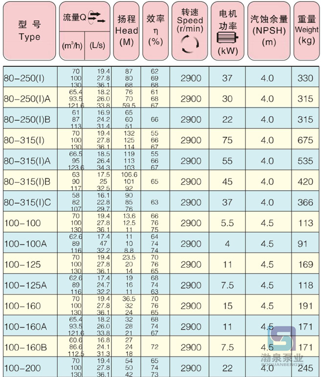 產(chǎn)品介紹 ISW100-125A臥式管道離心泵是采用IS型離心泵之性能參數(shù),在一般臥式泵的基礎(chǔ)上進(jìn)行巧妙組合設(shè)計(jì)而成,同時(shí)根據(jù)使用溫度、介質(zhì)等不同在ISW型管道泵基礎(chǔ)上派生出適用熱水泵、高溫、耐腐蝕化工泵、油泵。該系列產(chǎn)品具有高效節(jié)能、噪音低、性能可靠等優(yōu)點(diǎn),符合JB/T53058-93的標(biāo)準(zhǔn)要求,產(chǎn)品按ISO2858標(biāo)準(zhǔn)設(shè)計(jì)制造。具有效率高、流量及揚(yáng)程范圍大、結(jié)構(gòu)合理、成本低、壽命長、占地面積小、安裝維修方便等特點(diǎn)。是替代IS、DL等常規(guī)產(chǎn)品的新離心泵,特別適用于高層建筑的給排水、噴灌、冶金、市政、礦山水處理排污,食品、化工、空調(diào)及其他行業(yè)輸送水、化學(xué)介質(zhì)及其他液體。 ISW100-125A臥式管道離心泵流量范圍15~1200m3 /h,分基本型、擴(kuò)流型、A、B、C切割型等250多種規(guī)格,并根據(jù)流體介質(zhì)和溫度不同又派生出清水泵、熱水泵、化工泵、防爆油泵、防爆化工泵等系列產(chǎn)品。 主要用途 1、ISW臥式清水泵供輸送清水及物理化學(xué)性質(zhì)類似于清水的其它液體之用,適用于工業(yè)和城市給排水、高層建筑增壓送水、園林噴灌、消防增壓、遠(yuǎn)距離輸送、暖通制冷循環(huán)、浴室等冷暖水循環(huán)增壓及設(shè)備配套,使用溫度T≤80℃。 2、ISWR臥式熱水泵,廣泛適用于:冶金、化工、紡織、造紙以及賓館飯店等鍋爐熱水增壓循環(huán)輸送及城市采暖系統(tǒng),ISWR型使用溫度T≤120℃。 3、ISWH臥式化工泵,供輸送不含固體顆粒,具有腐蝕性。粘度類似于水的液體,適用于石油、化工、冶金、電力、造紙、食品、制藥和合成纖維等部門,使用溫度為-20℃~+120℃。 4、ISWY臥式管道油泵,供輸送汽油、煤油、柴油等油類產(chǎn)品或易燃、易爆液體,被輸送介質(zhì)溫度為-20℃~120℃。 5、ISWHY型臥式不銹鋼防爆化工離心泵,適用于輸送易燃性化工液體。 6、ISWD臥式低轉(zhuǎn)速泵,適應(yīng)要求環(huán)境噪聲很低的場合,使用溫度T≤120℃。 工作條件 1.吸入壓力≤1.0MPa,或泵系統(tǒng)最高工作壓力≤1.6MPa,即吸入口壓力+泵揚(yáng)程≤1.6MPa、泵靜壓試驗(yàn)壓力為≤2.5MPa,訂貨時(shí)請(qǐng)注明系統(tǒng)工作壓力。泵系統(tǒng)工作壓力大于1.6MPa時(shí)應(yīng)在訂貨時(shí)另行提出,以便在制造時(shí)泵的過流部分和聯(lián)接部分采用鑄鋼材料。 2.環(huán)境溫度<40℃,相對(duì)濕度<40%。 3.所輸送介質(zhì)中固體顆粒體積含量不超過單位體積的0.1,粒度<0.2mm。 注:如果用介質(zhì)為帶有細(xì)小顆粒,請(qǐng)?jiān)谟嗀洉r(shí)說明,以便廠家采用耐磨式機(jī)械密封。 產(chǎn)品特點(diǎn) 運(yùn)行平穩(wěn):泵軸的絕對(duì)同心度及葉輪優(yōu)異的動(dòng)靜平衡,保證平穩(wěn)運(yùn)行,絕無振動(dòng)。 滴水不漏:不同材質(zhì)的硬質(zhì)合金密封,保證了不同介質(zhì)輸送均無泄漏。 噪音低:兩個(gè)低噪音軸承支撐下的水泵,運(yùn)轉(zhuǎn)平穩(wěn),除電機(jī)微弱聲響,基本無噪音。 故障率低:結(jié)構(gòu)簡單合理,關(guān)鍵部分采用品質(zhì)配套,整機(jī)無故障工作時(shí)間大大提高。 維修方便:更換密封、軸承,簡易方便。 占地更?。撼隹诳上蜃蟆⑾蛴?、向上三個(gè)方向,便于管道布置安裝,節(jié)省空間。 ![]() ![]() ![]() 因產(chǎn)品生產(chǎn)批次、型號(hào)不同,產(chǎn)品圖片及安裝尺寸僅供參考,詳情可聯(lián)系我們的銷售人員了解更多ISW100-125A臥式管道循環(huán)泵相關(guān)信息!