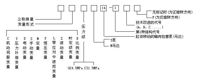 5MCY14-1B軸向柱塞泵將具有31.5MPa壓力的純凈的液壓油輸入到各種油壓機(jī)、液動(dòng)機(jī)等液壓系統(tǒng)中,以產(chǎn)生巨大的工作動(dòng)力。 同時(shí)該油泵可以作為液壓馬達(dá)使用。根據(jù)需要,本油泵有多種變量形式。5MCY14-1B軸向柱塞泵,油馬達(dá)廣泛用于船舶、航空、礦山、冶金、壓鑄、鍛造、機(jī)床的各類機(jī)械中,其特點(diǎn)是體積小、效率高、壽命長、設(shè)計(jì)先進(jìn)、結(jié)構(gòu)緊湊、維護(hù)方便。 ![]() 型號說明 ![]() 示例:63SCY14-1B 表示:排量為63毫升/轉(zhuǎn),壓力為31.5MPa的手動(dòng)變量的缸體旋轉(zhuǎn)的軸向柱塞油泵。 (即1000r/min時(shí)公稱流量為63L/min) 油泵系列規(guī)格(見表1.表2) 表1 CY14-1B、CM14-1B軸向柱塞泵(馬達(dá))系列參數(shù)