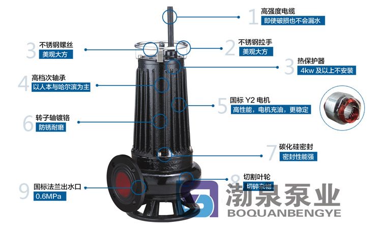 切割式潛水排污泵WQK10-12具有排污通過能力特別強,帶切割性能好,能將污水中的長纖維、塑料、紙、帶、布條、稻草、繩子等雜質(zhì)切碎后排出,排污泵采用高質(zhì)量的硬質(zhì)合金,雙端面機械密封和骨架油封組面部位,不得超過電動機高度的1/2,抽送污物溫度不超過40℃。 WQX系列污水污物潛水排污泵主要用于排送生活廢水、污水、人糞尿及含有短纖維紙屑、木屑、淀粉、泥沙、礦石粒等固體懸浮物和非腐蝕性介質(zhì),被抽送液體溫度不超過40℃,密度不大于1200kg/m3,ph值~9。該電泵采用雙端面機械密封和旋轉(zhuǎn)葉輪,葉輪采用不銹鋼、耐磨損、不堵塞、不纏繞、具有體積小、結(jié)構(gòu)緊湊、攜方便等優(yōu)點。