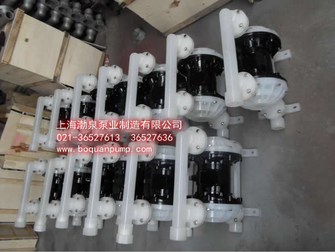 ![]() QBY-25工程塑料氣動隔膜泵產(chǎn)品概述: QBY-25工程塑料氣動隔膜泵采用壓縮空氣為動力源,對于各種腐蝕性液體,帶顆粒的液體,高粘度、易揮發(fā)、易燃、劇毒的液體,均能予以抽光吸盡。隔膜泵根據(jù)不同液體介質(zhì)分別采用丁腈橡膠、氯丁橡膠、氟橡膠、聚四氟乙烯隔膜,以滿足不同用戶的需要。 耐腐蝕耐酸堿氣動化工泵主要特點: 1、不需灌引水,吸程高達7m,揚程達50m,出口壓力≥6kgf/cm2; 2、流動寬敞,通過性能好,允許通過最大顆粒直徑達10mm。抽送泥漿、雜質(zhì)時,對泵磨損甚微; 3、揚程、流量可通過氣閥開度實現(xiàn)無級調(diào)節(jié)(氣壓調(diào)節(jié)在1-7kgf/cm2之間); 4、該泵無旋轉(zhuǎn)部件,沒有軸封,隔膜將抽送的介質(zhì)與泵的運動部件、工作介質(zhì)完全隔開,所輸送的介質(zhì)不會向外泄漏。所以抽送有毒、易發(fā)揮或腐蝕性介質(zhì)時,不會造成環(huán)境污染; 5、不必用電,在易燃、易爆場所使用安全可靠; 6、可以浸沒在介質(zhì)中工作; 7、作用方便、工作可靠、開停只需簡單地打開和關(guān)閉氣體閥門,即使由于意外情況而長時間無介質(zhì)運行或突然停機,泵也不會因此而損壞,不旦超負荷,泵會自動地停機,具有自我保護性能,當負荷恢復(fù)正常后,又有自動啟動運行; 8、結(jié)構(gòu)簡單、易損件少,該泵結(jié)構(gòu)簡單,安裝、維修方便,泵輸送的介質(zhì)不會接觸到配氣閥,聯(lián)桿等運動部件,不象其他類型的泵因轉(zhuǎn)子、活塞、齒輪、葉片等部件的磨損而使性能逐步下降; 9、可輸送較粘的液體(粘度在1萬厘泊以下); 10、本泵無須用油潤滑,即使空轉(zhuǎn),對泵也無任何影響,這是該泵一大特點。 主要用途: 1、泵吸花生醬、泡菜、土豆泥、小紅腸、果醬蘋果漿、巧克力等。 2、泵吸油漆、樹膠、顏料。 3、粘合劑和膠水、全部種類可用泵吸取。 4、各種瓦、瓷、磚器及陶器釉漿。 5、油井鉆好后,用泵吸沉積物及灌漿。 6、泵吸各種乳劑和填料。 7、泵吸各種污水。 8、用泵為油輪,駁船清倉吸取倉內(nèi)污水。 9、啤酒花及發(fā)酵粉稀漿、糖漿、糖密。 10、泵吸礦井、坑道、隧道、選礦、礦渣中的積水。泵吸水泥灌漿及灰漿。 11、各種橡膠漿。 12、各種磨料、腐蝕劑、石油及泥漿、清洗油垢及一般容器。 13、各種劇毒、易燃、易揮發(fā)液體。 14、各種強酸、強堿、強腐蝕液體。 15、各種高溫液體最高可耐150℃。 材質(zhì):鑄鐵、鋁合金、不銹鋼、工程塑料、 隔膜材質(zhì):丁晴膠、F46 型號:QBY-10、QBY-15、QBY-25、QBY-40、QBY-50、QBY-65、QBY-80、QBY-100。16、作為各種固液體分離設(shè)備的前級送壓裝置。 QBY-25工程塑料氣動隔膜泵 耐腐蝕耐酸堿氣動化工泵性能參數(shù):